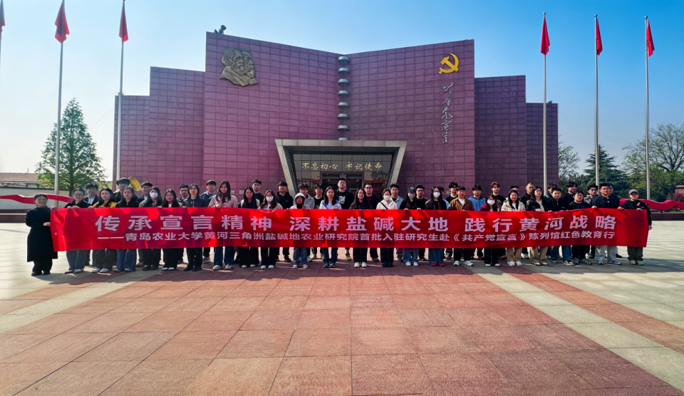 本次活动是青岛农业大学黄河三角洲盐碱地农业研究院组织的首批研究生入驻系列教育的重要一环。此前一天,同学们刚刚参加了“弘扬盐碱地红柳精神 聚力科教产融合”主题交流会,完成了从“红柳精神”到“宣言信仰”的精神接力。同学们纷纷表示,作为新时代农业科技工作者,要将《共产党宣言》中蕴含的真理力量转化为服务黄河流域生态保护和高质量发展国家战略的实际行动,传承红色基因,厚植爱农情怀,练就兴农本领,在盐碱地上绽放青春之花。