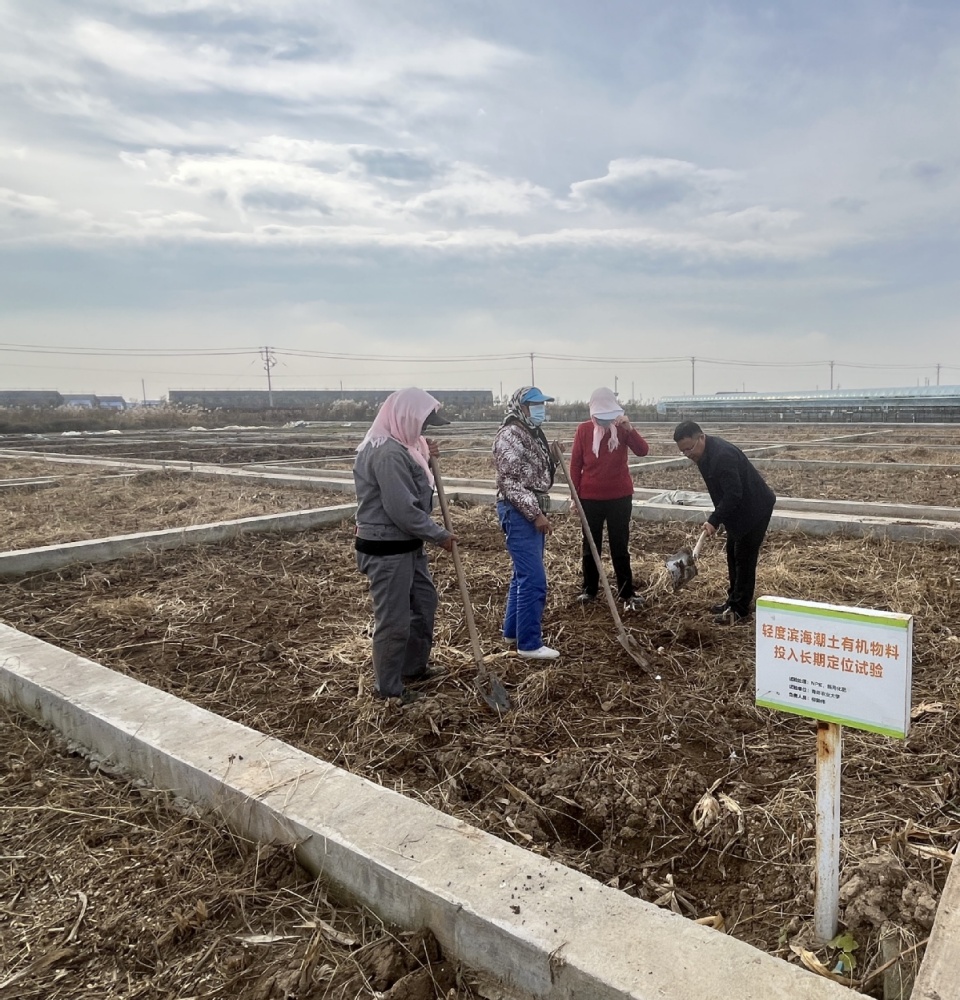 2008年,崔德杰教授带领土壤健康与精准调控团队入驻利津县毛坨村,系统开展盐碱地提质增效,从多源有机物料投入、棉花轻简化施肥等多个角度开展农业技术的示范和推广。2012年柳新伟副教授进入团队,针对中度盐碱地棉花一熟制,先后开展了绿肥-棉花和青饲-短季棉等种植模式的构建,明确了中度盐碱地冬闲田综合利用下的抑盐-固碳-持氮等效益,核算了不同模式下的碳固定、排放,为盐碱地综合利用提供了理论和技术支撑。